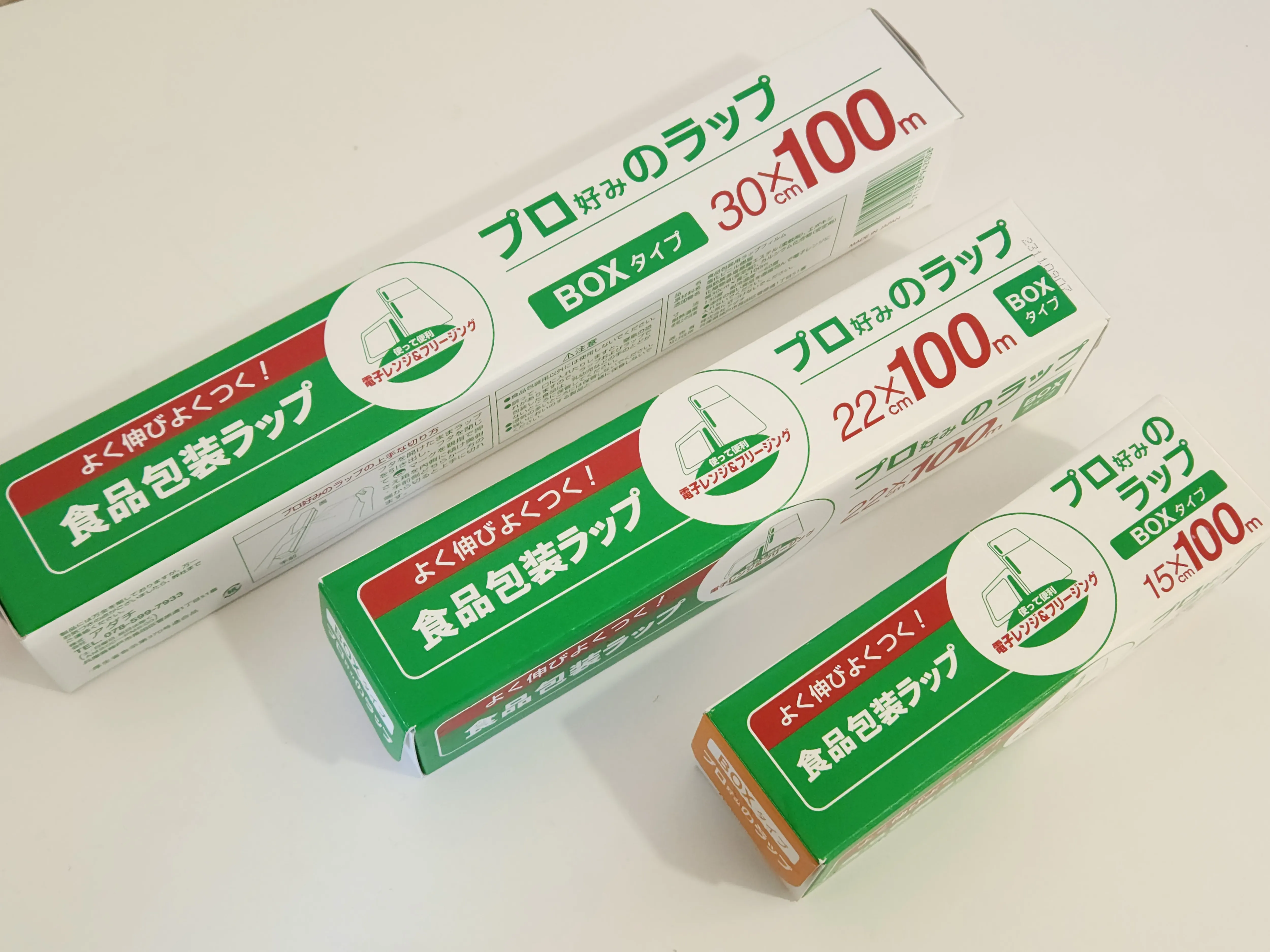 業務スーパーの『プロ好みのラップ』は、幅が異なる3サイズ展開で、有名メーカー品と比べ、同じ価格で倍以上の長さがあり、コスパがとても良いのが魅力。