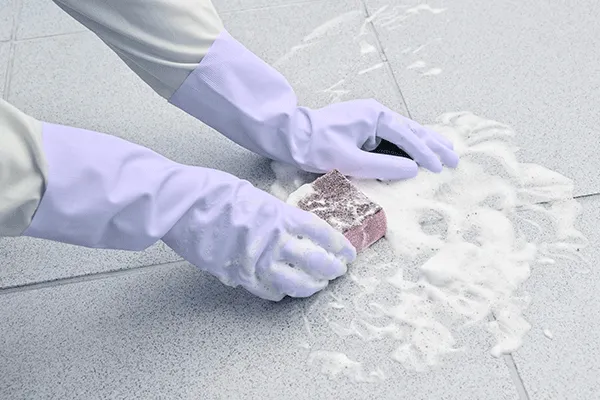 半日ほど放置したら、重曹ペーストを全て取り、スポンジやブラシで皮脂汚れや石鹼カスを擦って落とします。