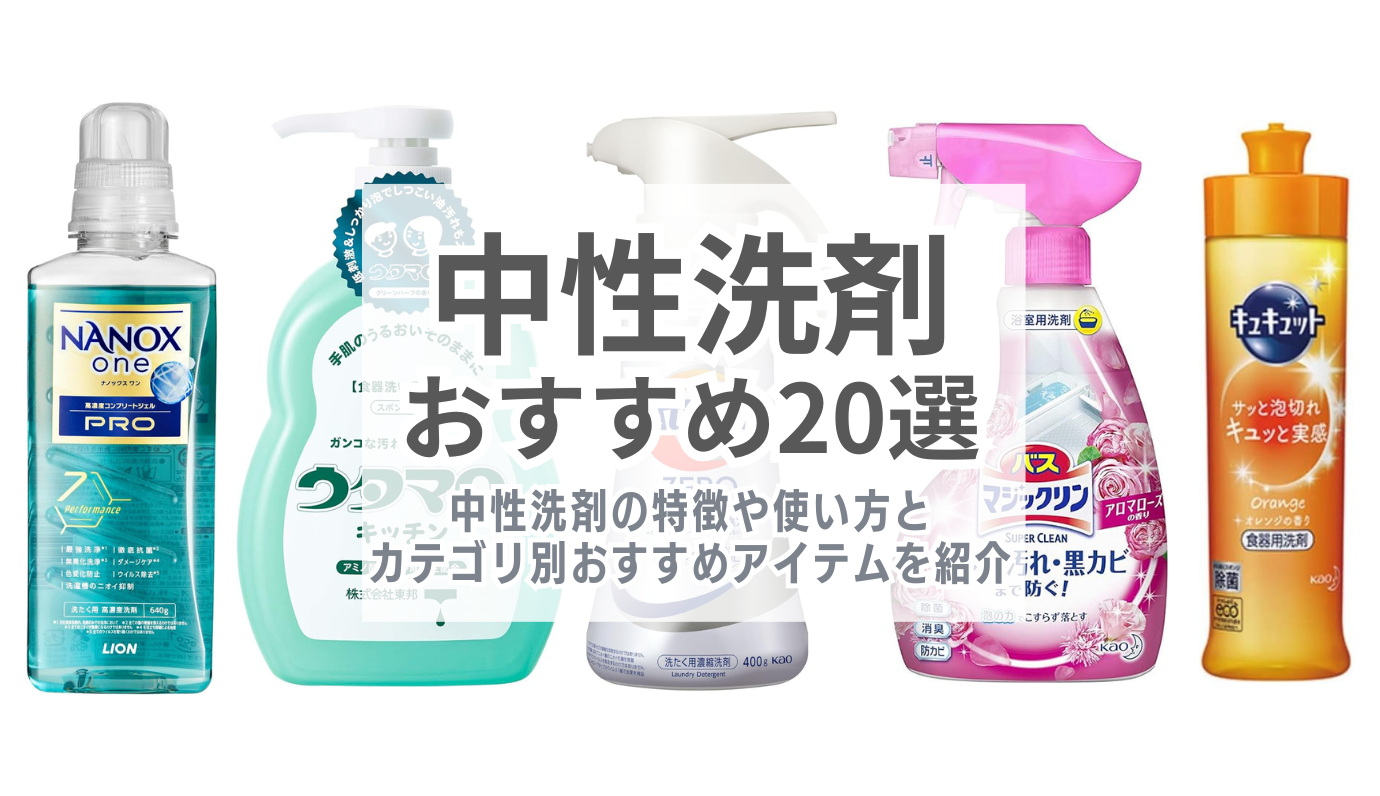 中性洗剤の特徴や使い方を解説。「キュキュット」や「アリエール」「ウタマロクリーナー」など、衣類や掃除、食器用とカテゴリ別でおすすめの中性洗剤もご紹介します。「ほかの洗剤とのちがいは?」「中性洗剤の種類は?どんな商品がある?」「洗濯用中性洗剤の代用品は?」などの疑問にも答えます。