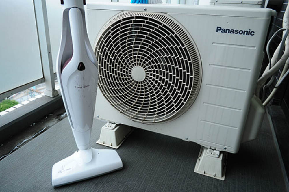 掃除機のブラシの部分だけが室外機の後ろに触れるようにしましょう。