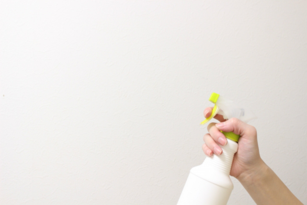 重曹小さじ1杯を100mlの水に溶かし、壁に向かって吹きかけて濡れ雑巾で水拭きします。仕上げに乾いた雑巾で乾拭きをすればOK。壁にスプレーする際は、液ダレによるシミが残らないように、壁の下から上方向に掃除をするのがポイントです。