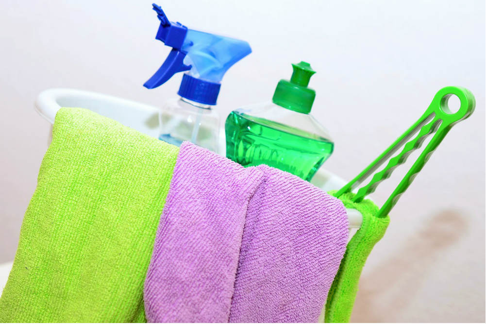表面のゴミを取り去ったら、水拭きや洗剤での掃除へと移りましょう。2度拭きが必要な洗剤を選んだ場合は、洗剤で掃除した後、かたく絞った雑巾などで再度拭きあげてください。