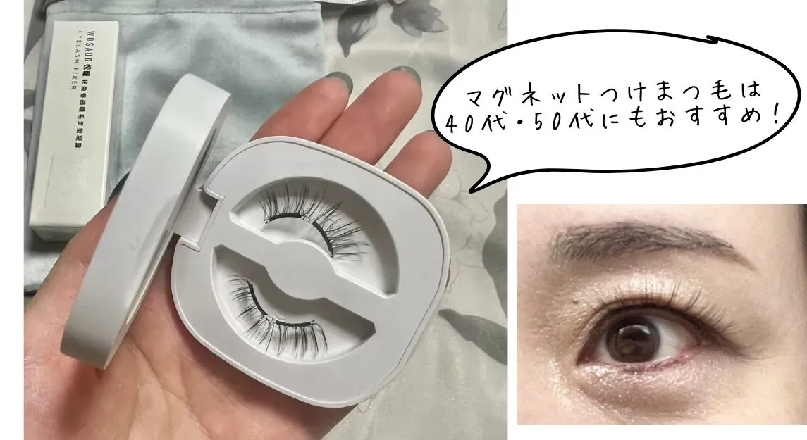 「不器用だから無理かも…」「最近、老眼で手元がぼやけるのよね(涙)」そんなアラフィフ世代の本音、痛いほどわかります。でも大丈夫!コツさえ押さえれば、マグネットつけまつ毛は想像よりシンプルです。そこで、実際に人気商品WOSADO(ワサド)を体験してみました。