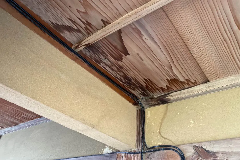 雨漏りの原因を探るため、地震など自然災害に遭ったか、害虫被害や害獣被害がないかをチェックします。