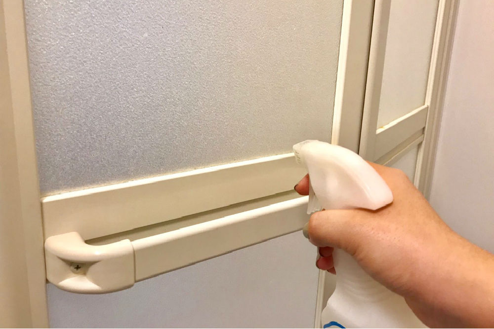 黒カビ部分に向けて、カビ取り剤を噴霧しましょう。