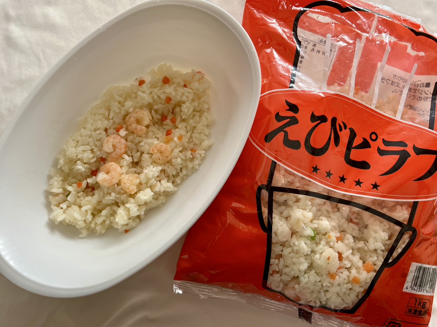 【業務スーパー】「えびピラフ」実食レポ!1kgと大容量で助かる上においしいから買って大正解!