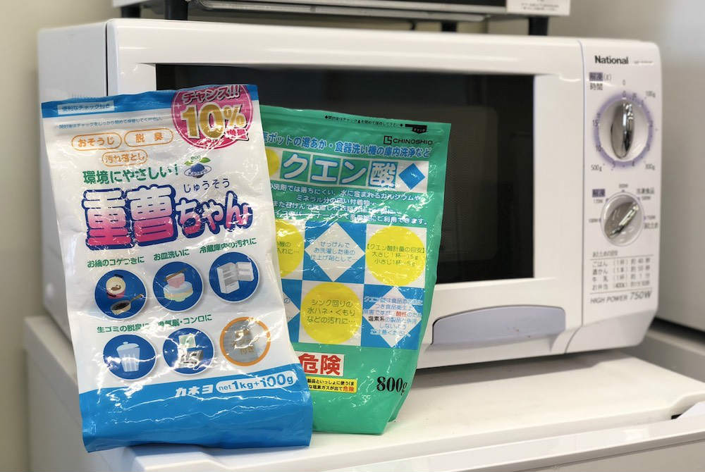 ここまででもだいぶ電子レンジがきれいになったと思いますが、水垢汚れが気になるという方は、こちらの手順もお試しください♪使うのは、クエン酸もしくはお酢です。クエン酸とお酢は酸性です。そして水垢はアルカリ性。すなわちアルカリ性の汚れである水垢は酸性であるクエン酸、お酢と相性がぴったり、というわけなのです!