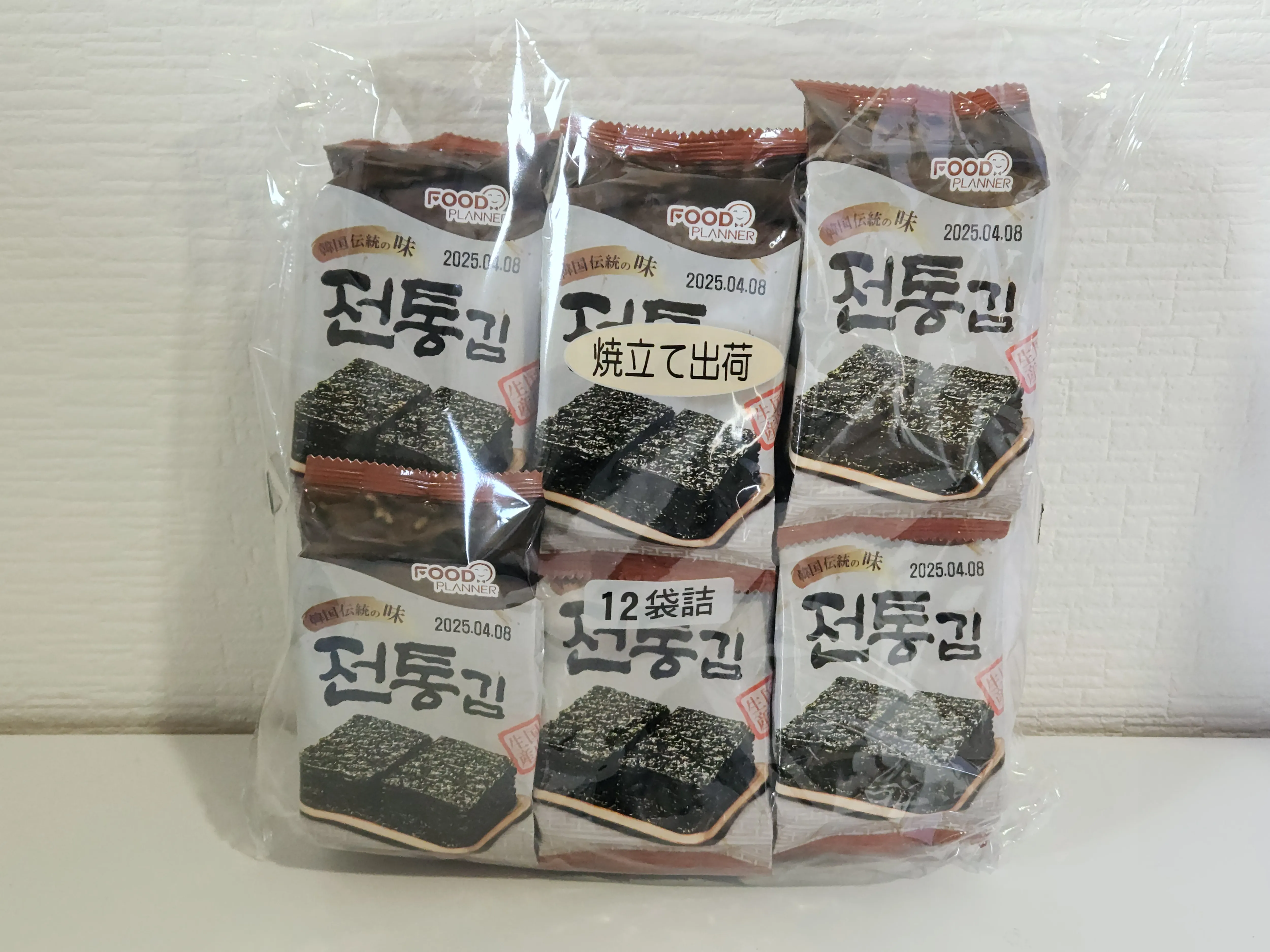 業務スーパーの『韓国海苔』は12パック入りで308円(税込)、一袋あたり約26円というお手頃価格。韓国海苔はさまざまなメーカーから販売されていますが、業務スーパーのものはおいしくて安いと評判です。こちらは、原材料の韓国海苔は韓国産ですが、国内の工場で生産されています。