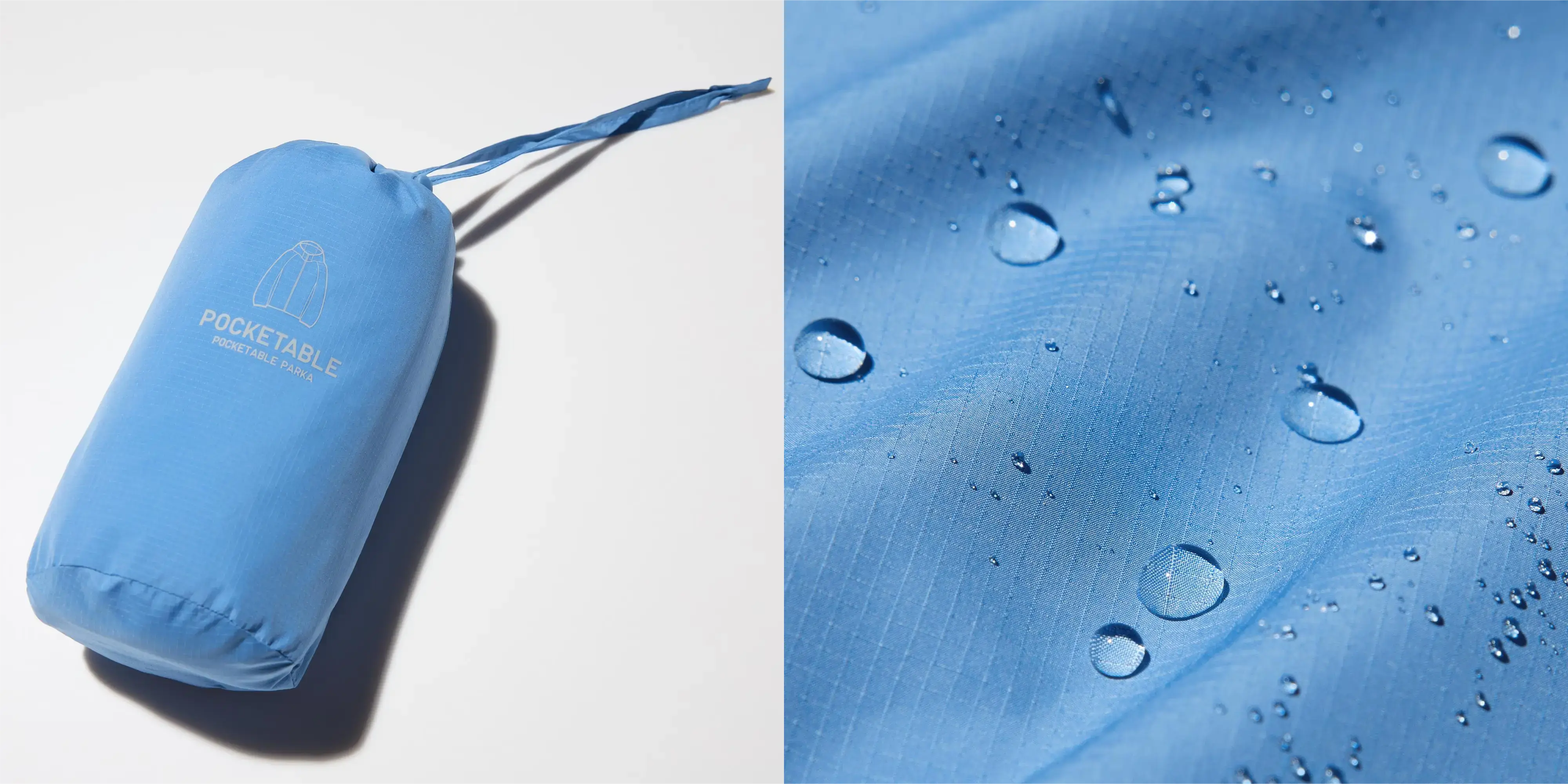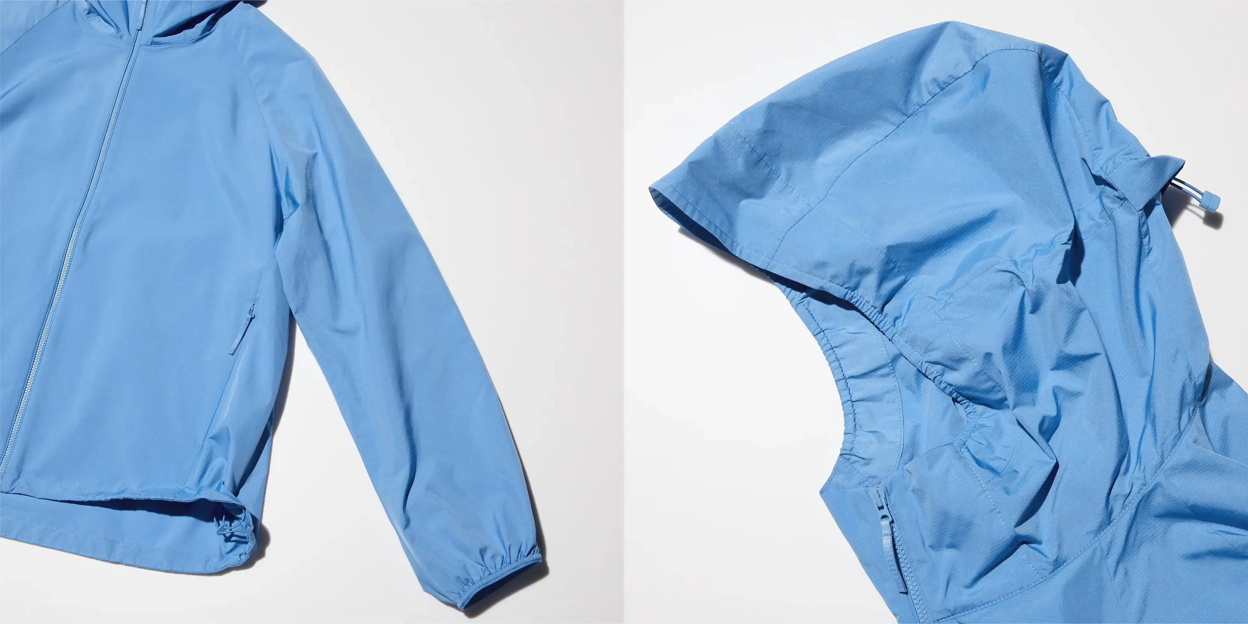 ユニクロの「ポケッタブルUVカットパーカ」は、軽くて薄手ながらUPF50+で紫外線対策できる機能的なアイテム。撥水加工ありで、急な小雨やアウトドアシーンにも対応できます。