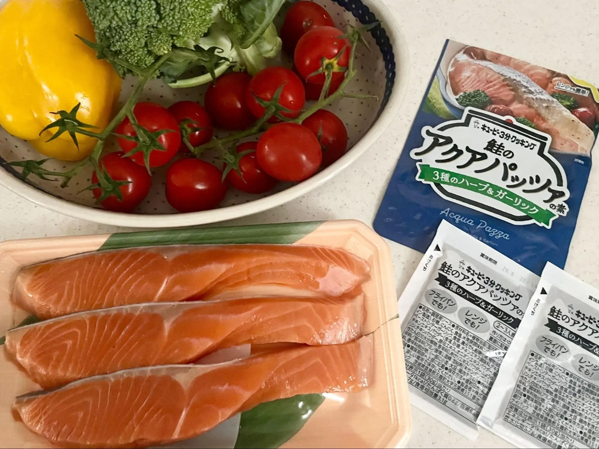 夕飯の献立に悩んでいた先日。スーパーで出会ったのがキユーピー3分クッキングの「アクアパッツァの素」でした。見つけた瞬間、「これなら魚だけ買えばほかは冷蔵庫にあるものでいけるかも!」と早速お試ししてみることに。