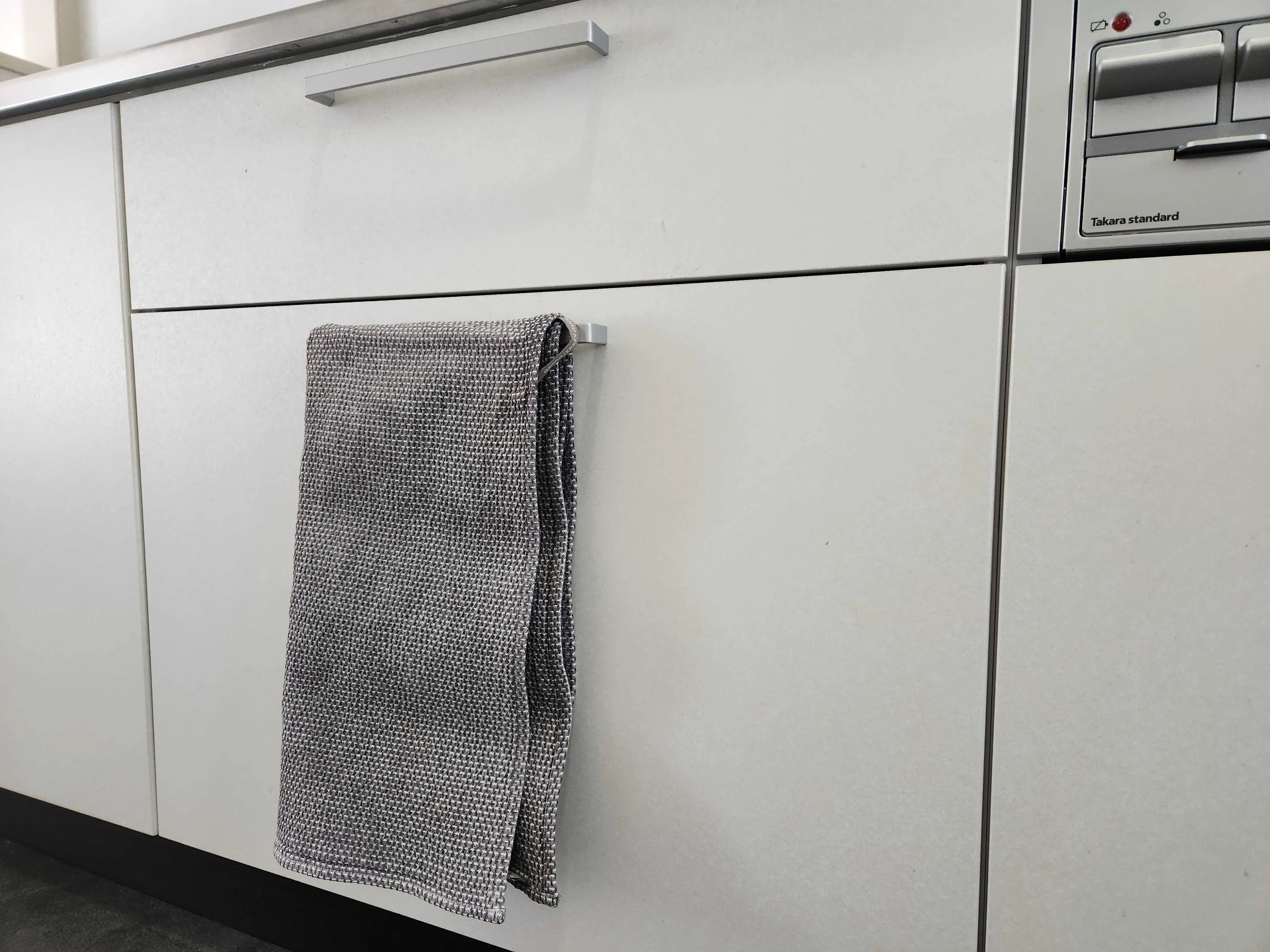 水切りタオルは、使わないときはタオル掛けにかけておけるため、邪魔にならないのも魅力の一つ。シンプルなデザインの『ジョージ・ジェンセン・ダマスク』は、インテリアになじむ、実用性とおしゃれさを兼ね備えたおすすめアイテムです。