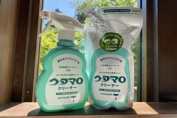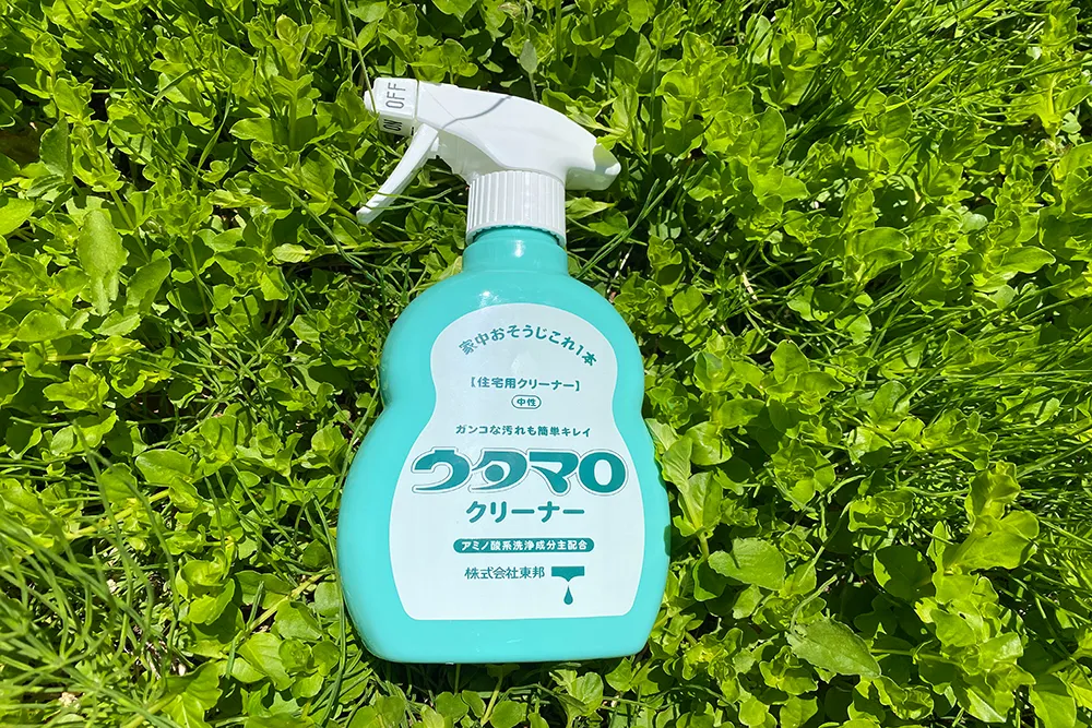 今回はそんな中からひとつもっていると便利な『ウタマロクリーナー』に注目。スプレータイプの住宅用クリーナーで、ガンコな油汚れや水垢などを落としてくれる中性洗剤です。アミノ酸系の洗浄成分を主としているので、肌や家具などの素材へのダメージも少なく、やさしいエコ洗剤でもあります。