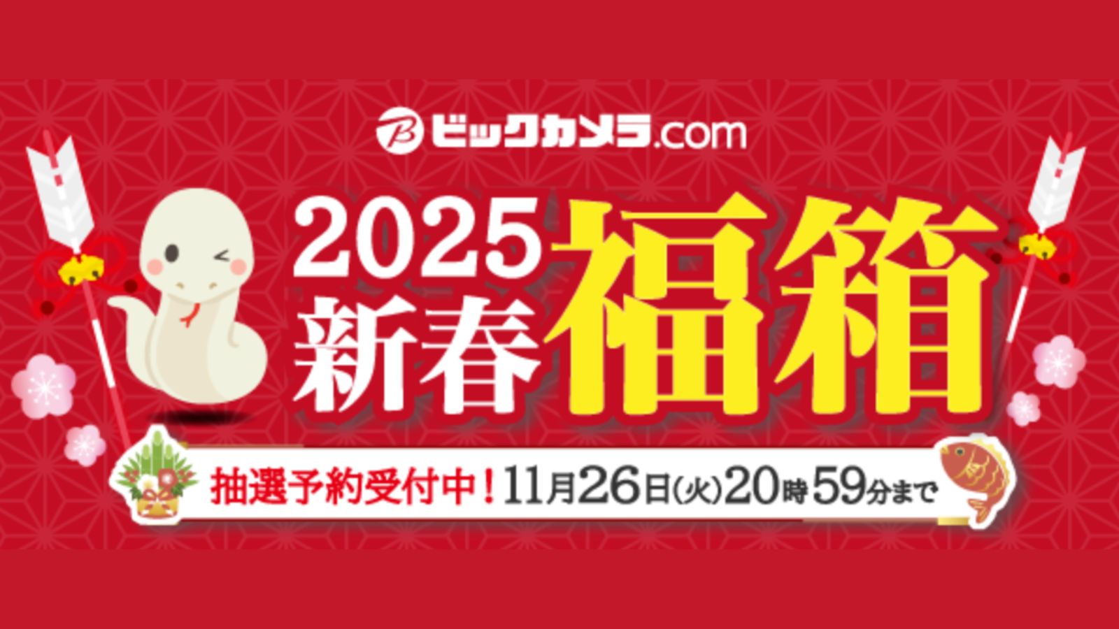 ビックカメラの2025年福袋の発売日は、2024年11月20日(水)8:00~11月26日(火)20:59まで抽選予約が開始されます。