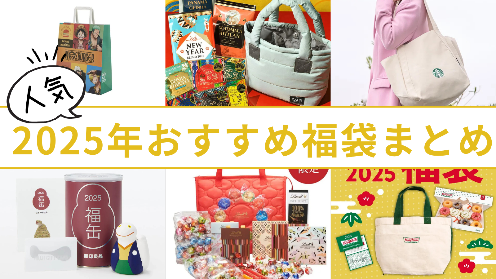 2025年におすすめの福袋を一挙に紹介します。人気のスタバやカルディ、ジェラピケ、無印から有名百貨店の福袋までをピックアップしました。福袋のなかには予約締切日が迫っているものもあるので、情報をいち早くチェックしておきましょう!
