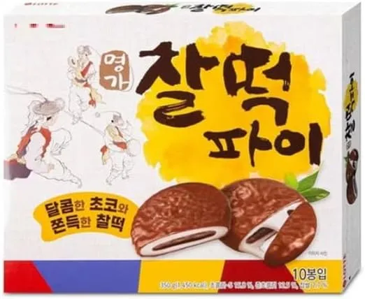 韓国版チョコパイとして人気のチャルトックパイは、チョコとお餅を二重にコーティングしたもちもちスイーツ。スポンジではなく、本当に「お餅」で包まれているのが特徴です。チョコの甘さとお餅の塩気が絶妙で、和菓子好きにも好まれます。