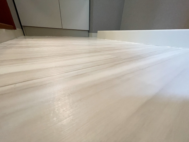 ビニール床は別名クッションフロアとも言い、防水性が高いため掃除がしやすく、汚れが比較的落ちやすいため、キッチンや洗面所、トイレといった水回りで使われています。
