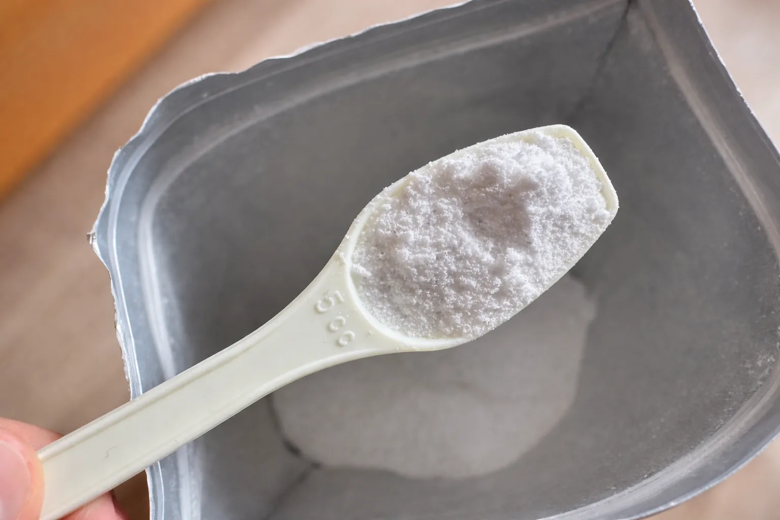 危うく見逃すところでしたが、容器の底に計量スプーンが隠れていました!