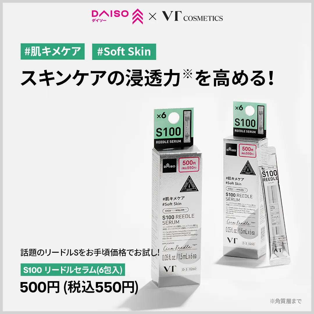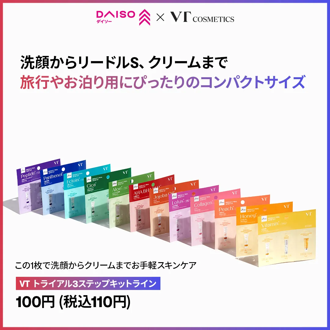 「韓国コスメ、ずっと気になってるけど現品を買うほどの勇気はない…」そんな“あと一歩”でためらっている人ほど知ってほしいのが、ダイソーでVTのスキンケアアイテムが買えるという事実です!