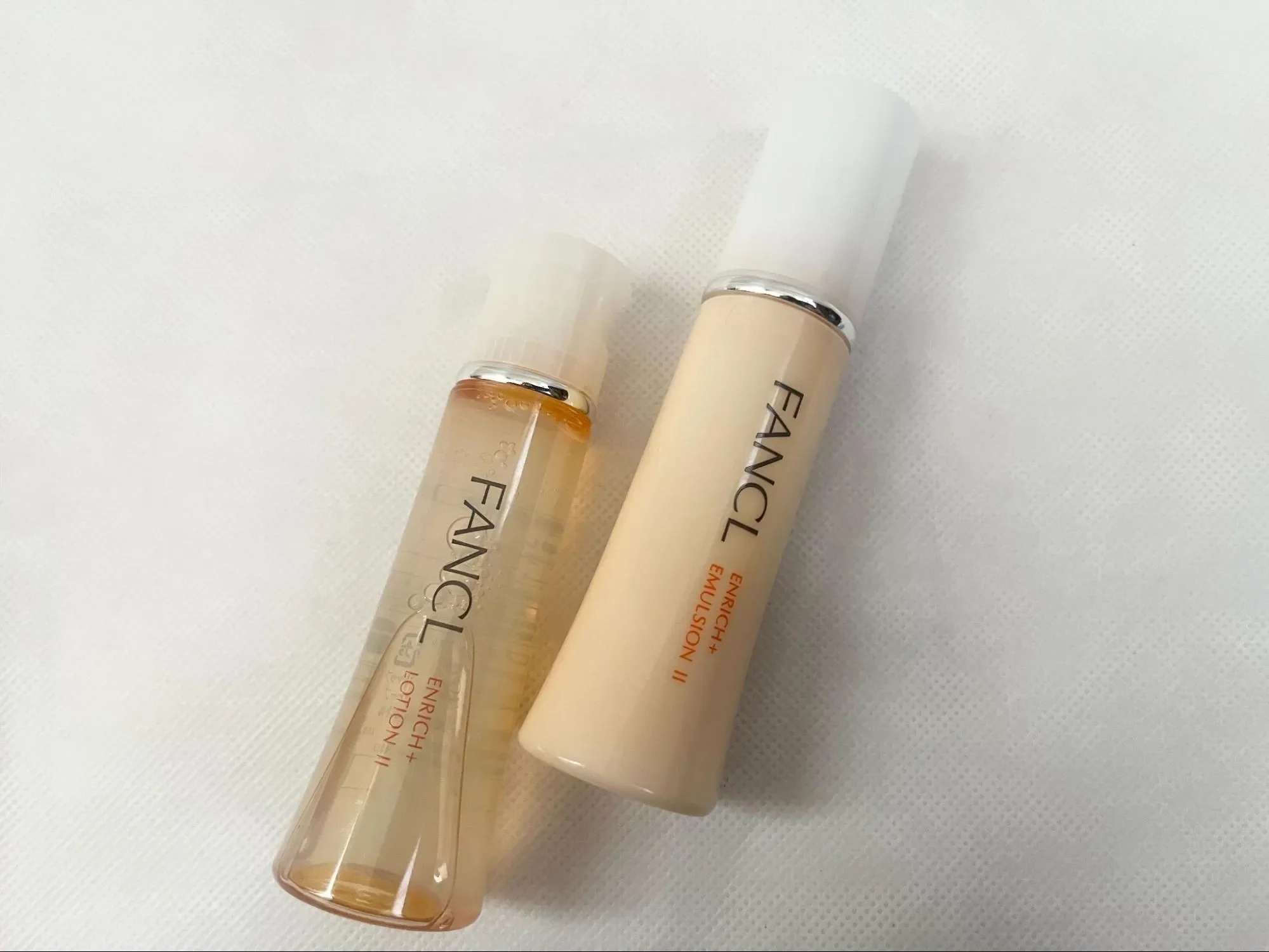 まずは、今回使ってみたトライアルセットのなかみを紹介します。今回のセットはファンケルの「エンリッチプラスⅡ(しっとり)」です。このほか、トライアルセットはないのですが、「エンリッチプラスⅠ(さっぱり)」もあります。