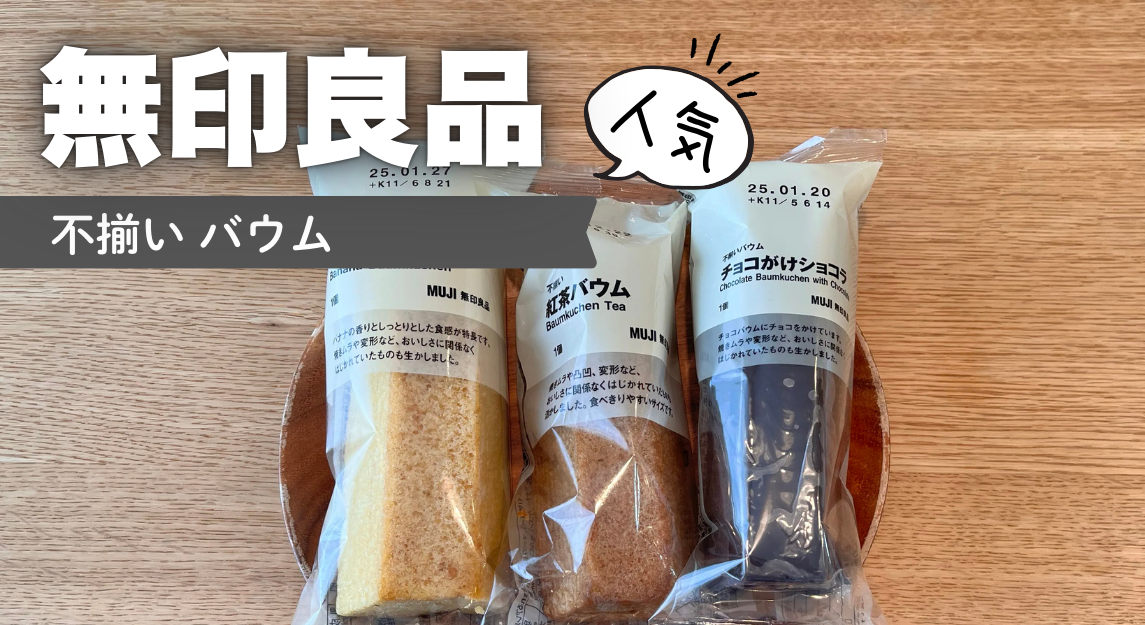無印良品で大人気のお菓子「不揃いバウム」シリーズ。人気1位のバナナバウムをはじめとする10種類以上が常時ラインナップされていますよね。新商品や季節限定も数多くあり、飽きなく楽しむことができます。今回は3種類の不揃いバウムを実際に食べたので、感想をレポートします。