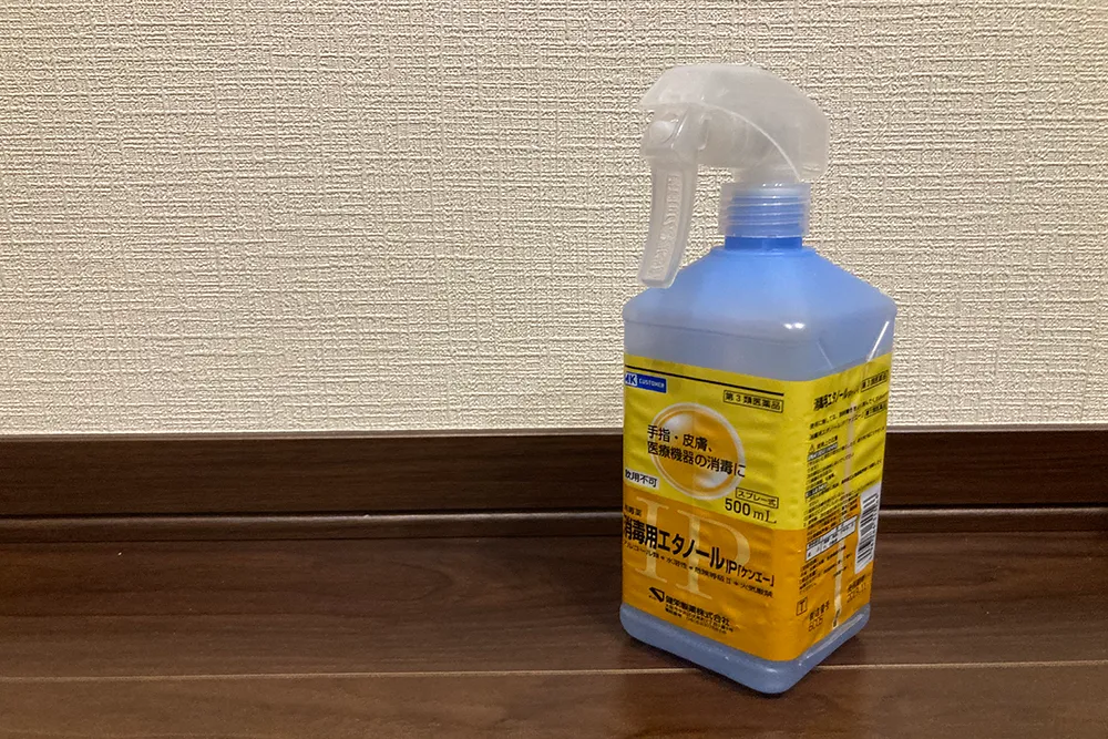 方法は簡単でシンクのときと同様に、掃除のあとに水気が引いたら消毒用のエタノールをスプレーするだけ。100%のエタノールよりも、少し濃度が低い消毒用のエタノール(80%)のほうが殺菌効果は高いといわれています。